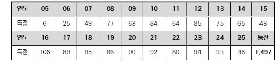 지난 시즌까지 1,461득점을 기록하며 1,500득점까지 39득점을 남겨둔 채 올 시즌을 시작한 최정은, 2일까지 61경기에서 36득점을 올리며 대망의 1,500득점 고지까지 단 3개만을 남겨두게 됐다.