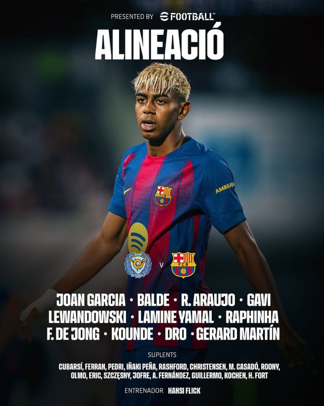 바르셀로나와 대구FC는 4일 오후 8시 대구스타디움에서 2025 아시아투어 에디션 2경기를 벌인다. 킥오프를 1시간여 앞두고 두 팀의 선발 명단이 공개됐다.