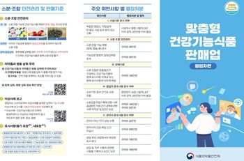 한편 식약처는 맞춤형 건강기능식품에 대한 이해도를 높이기 위해 맞춤형 건강기능식품 소분·조합 안전관리, 이상사례 보고 및 표시사항, 주요 위반사항 등을 안내하는 ‘맞춤형 건강기능식품 법령·제도 등에 관한 종합안내서’를 발간했다.