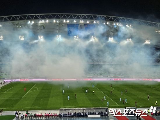 (엑스포츠뉴스 대구, 김환 기자) 비가 쏟아지는 평일 저녁 늦은 시간에도 4만 5천여명의 관중이 경기장을 찾으며 흥행에는 성공했지만, 이에 비해 전반적인 분위기는 어수선했다.