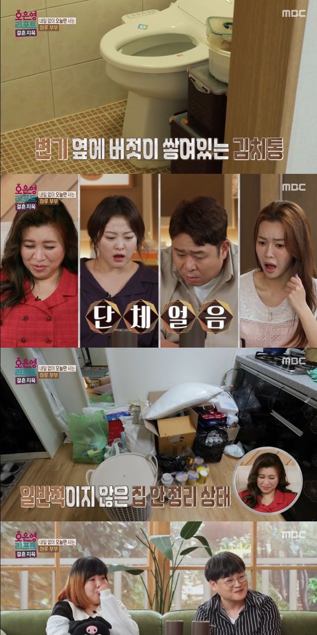 현관 앞에는 밥솥이, 쓰레기 옆에는 빨래 바구니가, 쓰레기와 음식물은 한자리에 모여 있었고, 부부는 화장실에 김치를 보관하는 이유로 "지금 냉장고가 꽉 차 있어서", "화장실이 시원해서"라고 답했다.