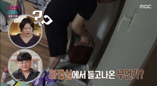 그 사이 아내는 화장실에서 나왔고, 뒤이어 화장실로 향한 남편은 "아이고"라며 무언가를 들고나와 궁금증을 자아냈다.
