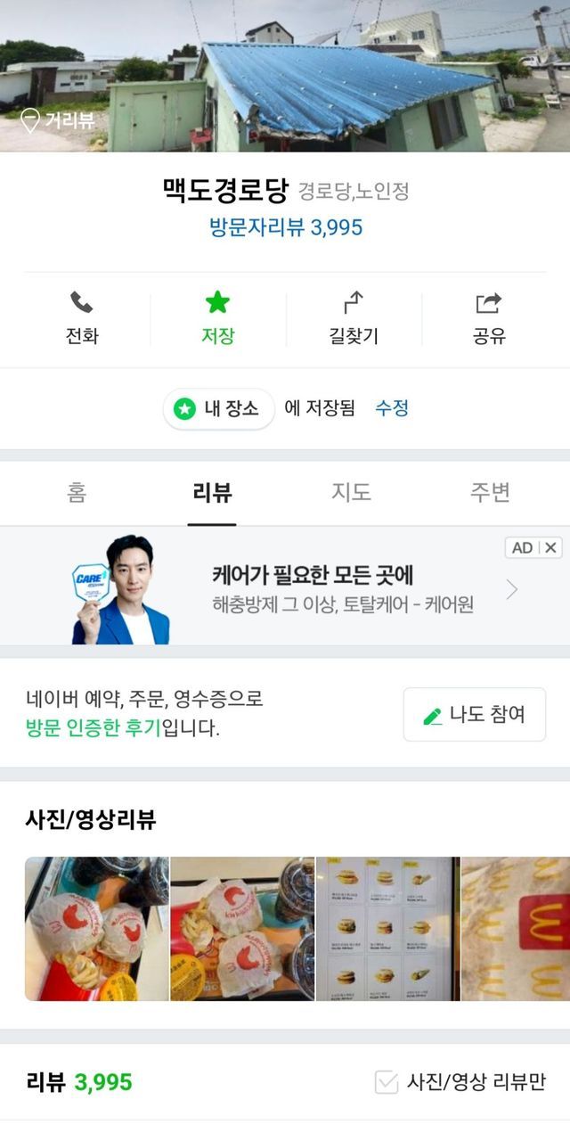 미스 매칭으로 맥도경로당으로 찍혀