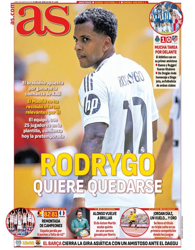 '아스'는 지면 1면에 호드리구를 내세우며 "호드리구는 남고 싶어 한다"라고 대서특필했다.