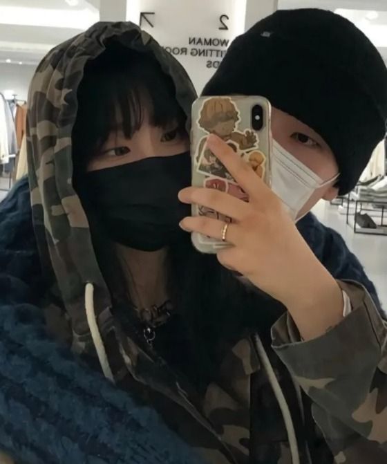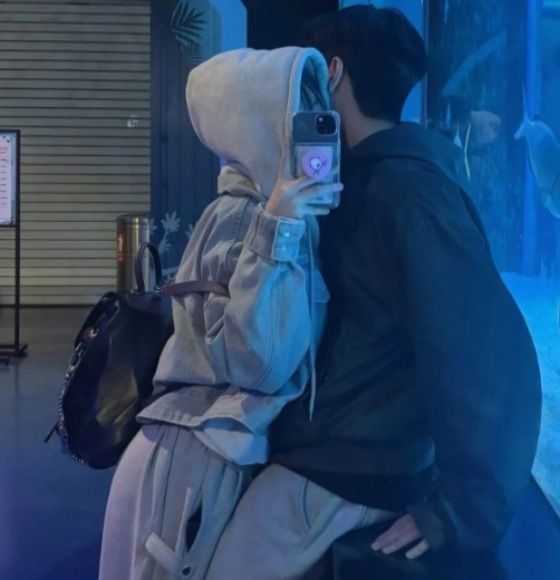 공개된 사진 속 두 사람은 마스크와 후드를 눌러쓴 채 카메라를 응시하며 밀착 포즈를 취하고 있다. 어깨를 감싸 안거나 서로에게 몸을 기댄 모습에서 애정이 물씬 풍긴다.