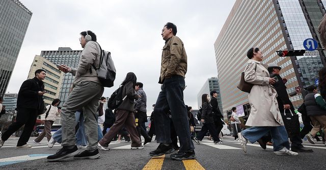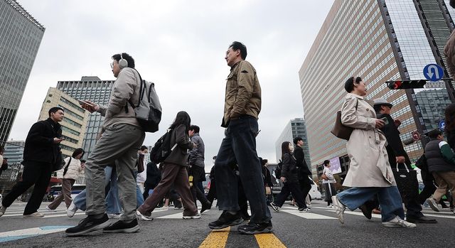 서울 종로구 광화문 네거리에서 직장인들이 출근길을 서두르고 있다. / 뉴스1