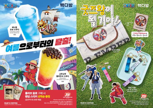 또 다른 저가 커피 프랜차이즈 브랜드인 더본코리아(475560)의 ‘빽다방’도 같은 시기 일본 유명 애니메이션 IP인 ‘원피스’로 승부를 걸었다. 원피스는 단일 작가가 집필한 만화 중 세계에서 가장 많이 팔린 작품이다. 2022년 기준 글로벌 누계 발행 부수 5억 1000만부를 넘기며 기네스 기록도 갖고 있다.