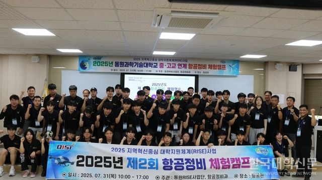 [한국대학신문 심정은 기자] 동원과학기술대학교 항공정비과는 지난달 31일 ‘제2회 동원 항공정비 체험캠프’를 실시했다고 5일 밝혔다. 2024년 이후 두번째로 시행한 이번 동원 항공정비 체험캠프는 항공사 및 항공관련 분야로의 진로에 관심을 가진 고교 3학년 재학생을 위주로 선발해 항공관 실습장과 보유중인 B777 항공기 실습장에서 진행함으로 생동감 넘치는 항공정비 실습 체험의 기회를 제공했다.