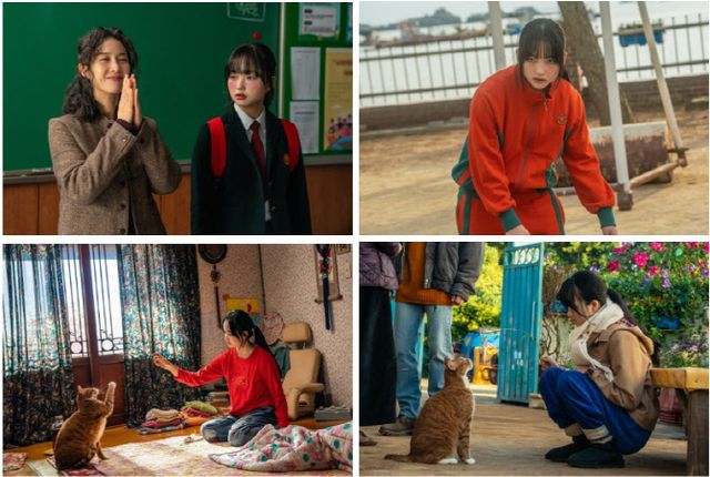 또 다른 스틸에서는 좀비임을 감추기 위해 진하게 화장을 하고 등교한 볼빨간 학생 수아가 눈길을 끈다. 창백한 피부와 핏줄이 드러난 얼굴 위로 덧칠된 과한 화장과 체육복 차림으로 운동장에 서서 흐느적거리는 모습은 웃음을 유발하는 동시에, 평범했던 학생 수아의 과거를 떠올리게 만들며 짠한 감정을 불러일으킨다. 마지막으로 공개된 스틸은 애용이와 교감하는 냥집사 수아의 일상을 담았다. 편안하게 애용이와 놀거나, 마당에 앉아 나뭇가지로 장난을 치는 순간마다, 좀비임에도 인간미 가득한 수아의 따스함이 고스란히 전해진다.