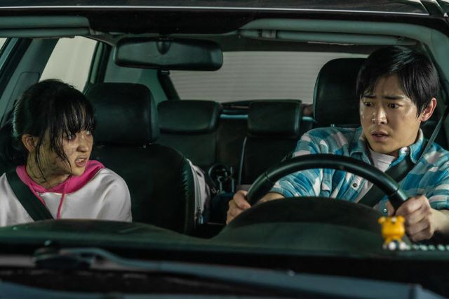 먼저 차 안에서 아빠 정환(조정석 분)을 향해 입질하는 수아의 모습은 좀비 본능이 깨어나는 긴박한 순간을 포착하며 묘한 긴장감을 자아낸다. 좀비 바이러스를 피해 고향 은봉리로 내려온 부녀는 할머니 밤순(이정은 분)의 집에 몸을 피하지만, 그곳에서도 딸을 지키려는 정환과 주변을 경계하는 수아의 위태로운 일상을 엿볼 수 있다. 반면, 밤순의 고스톱 메이트가 된 수아는 전혀 다른 매력을 보여준다. 밤순과 고양이 애용이와 함께 마루에 앉아 한가로이 시간을 보내며 이마에 화투 패를 붙이고 멍하니 있는 모습은 영화 ‘좀비딸’ 특유의 유머와 따뜻함을 전한다.
