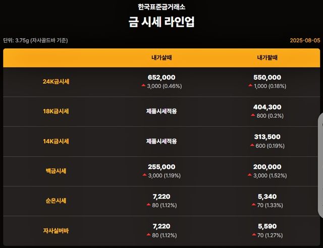 순금(24K) : 매입가 65만 3000원 / 매도가 54만 9000원