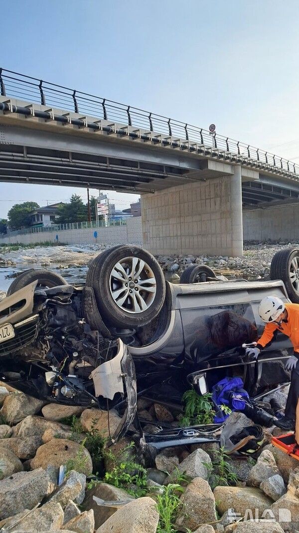 경기 포천시 이동면에서 차량이 하천으로 추락하는 사고가 발생했다.