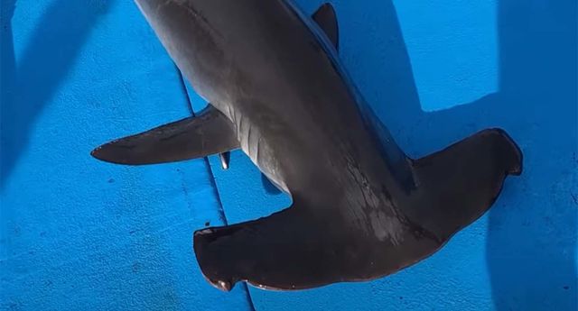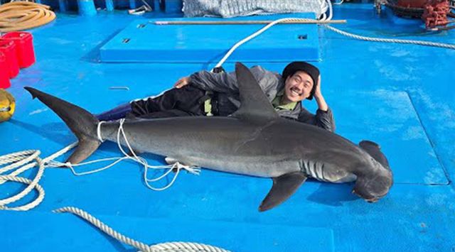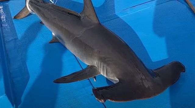 선원들도 이 상어는 처음 본다고 입을 모았다. 측정 결과 이 상어는 길이 2m60cm에 달하는 대형 개체였다.