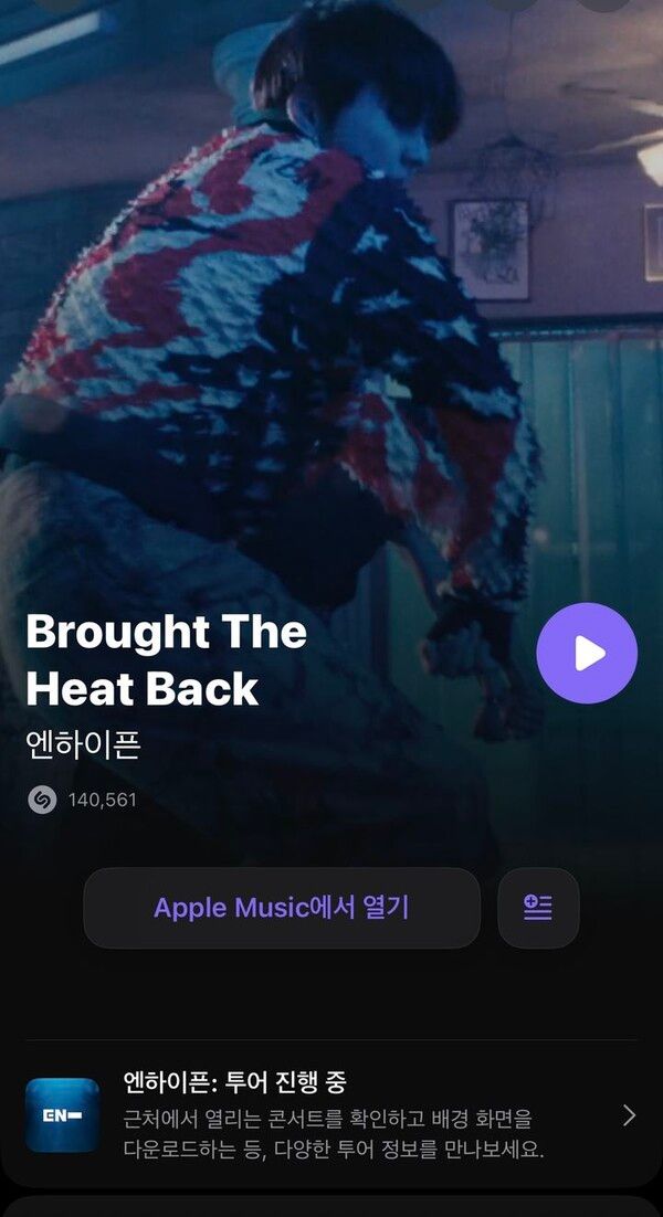 애플(Apple)의 뮤직 디스커버리 애플리케이션(앱) 샤잠(Shazam)이 K-팝 대세 그룹 '엔하이픈(ENHYPEN)'의 월드 투어와 동행한다.