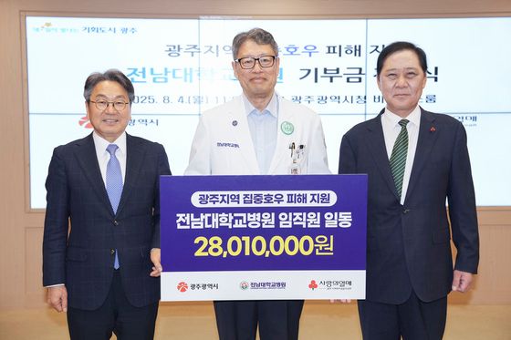 전남대병원 임직원들은 갑작스러운 집중호우로 피해를 입은 시민들을 돕기 위해 자발적으로 참여해 성금 2801만원을 모았다. 이 성금은 광주사회복지공동모금회를 통해 광주지역 집중호우 피해 지원 등에 사용될 예정이다.
