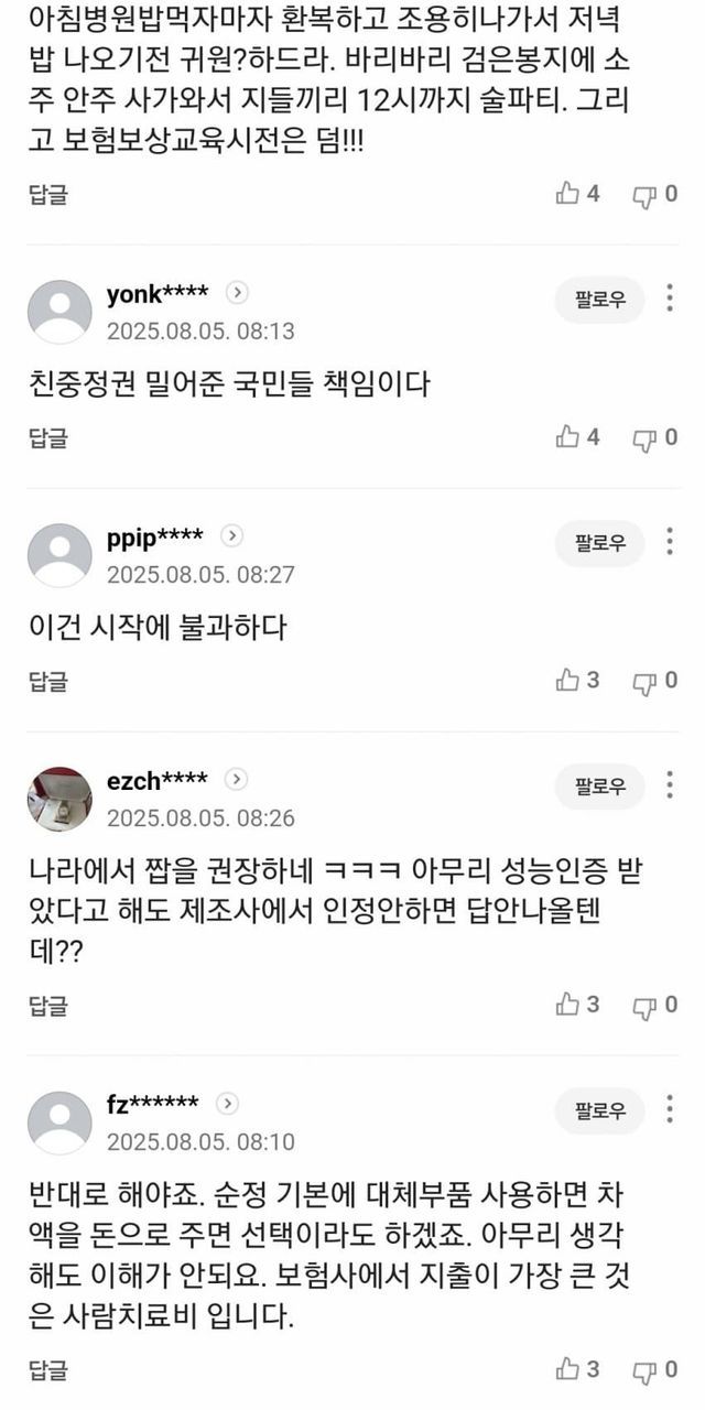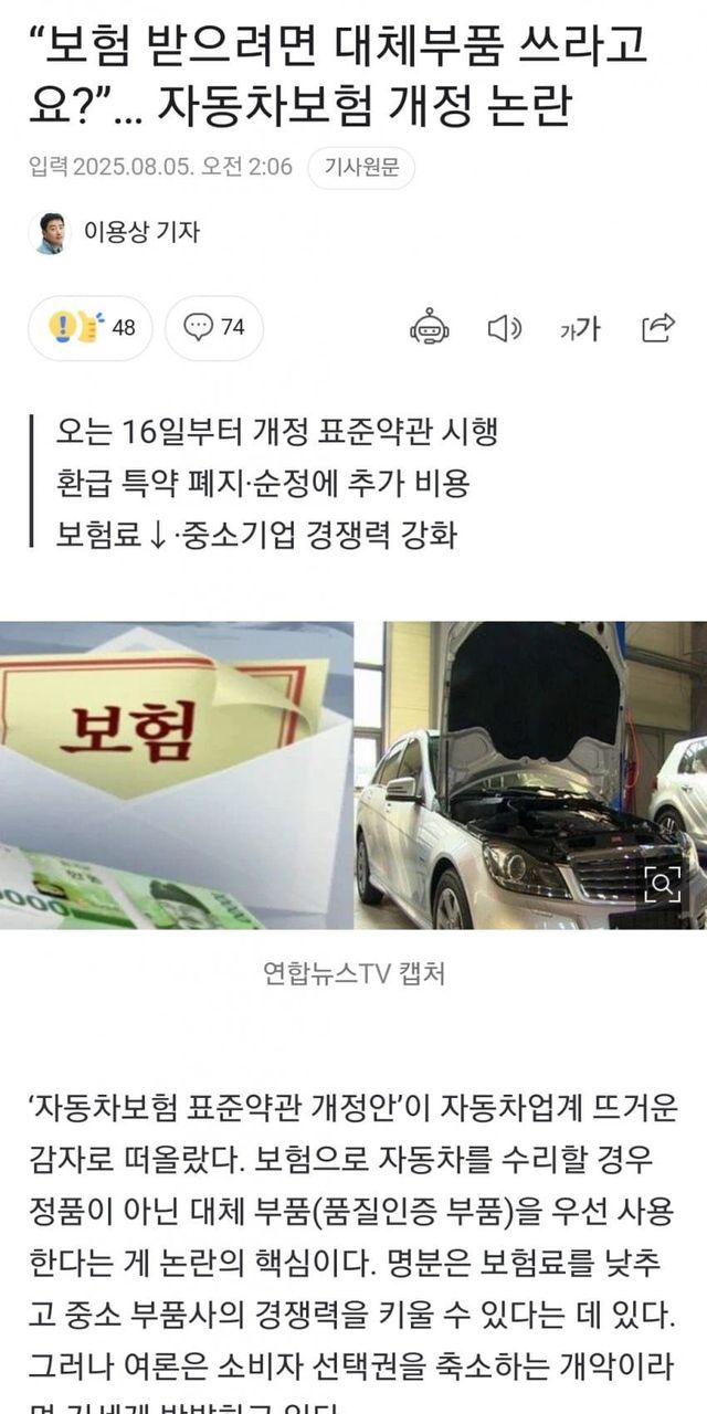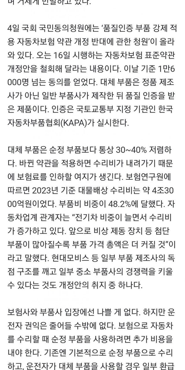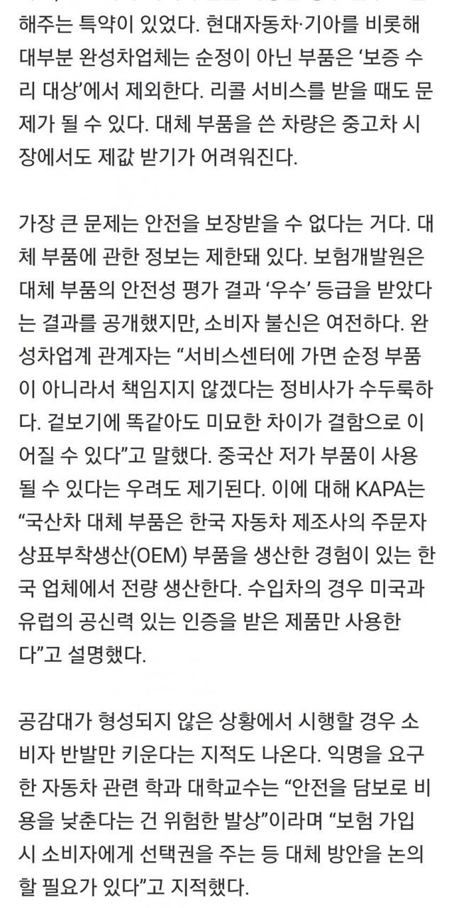 미국도 사고시 순정부품을 안쓰긴 한가봄