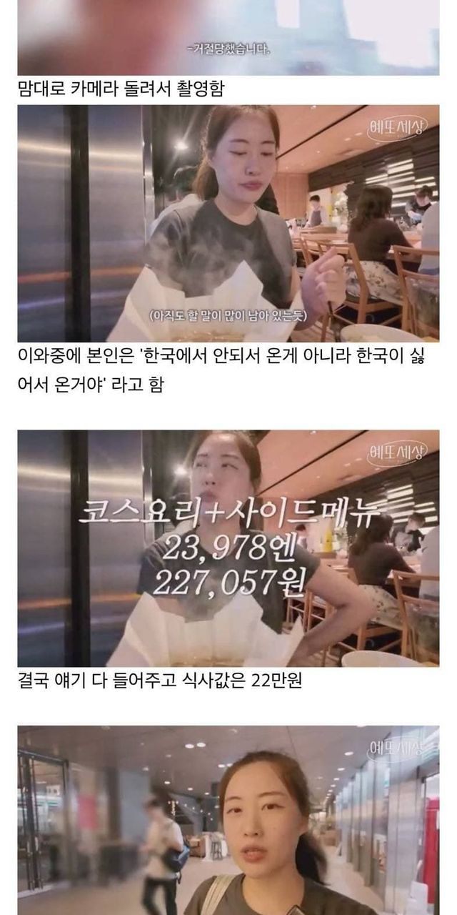 원래 지인이었기도하고 식사비 지불과 만남 시간의 단축 등 서로 섭섭한 부분이 있었다면 대화로 풀었으면 하는 마음이 들지만, 저의 노력은 일방적으로 무시가 되었고 네거티브 편집한 영상을 무단으로 업로드 했다는 점이 이해가 되지 않았습니다.