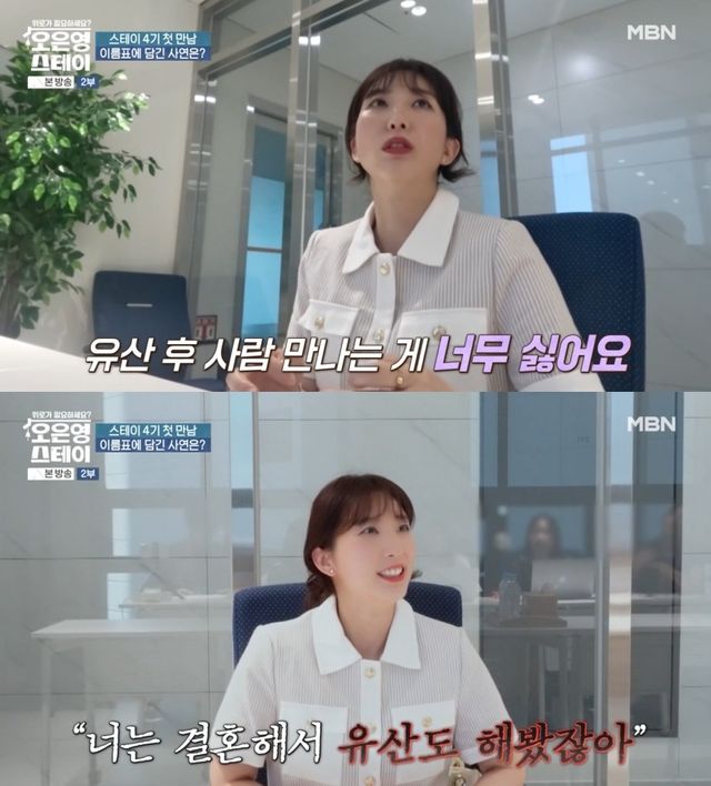 유산 고백 후 '오은영 스테이'에 깜짝 등장한 박인영은 제작진과의 인터뷰에서 "이 이야기는 엄마랑 동생이 싫어할 수도 있다. 어쨌든 유산을 했다. 유산하고 나서는 사람 만나는 게 너무 싫다. 왜 그런지 모르겠는데 그냥 싫다"며 솔직한 마음을 내비쳤다.