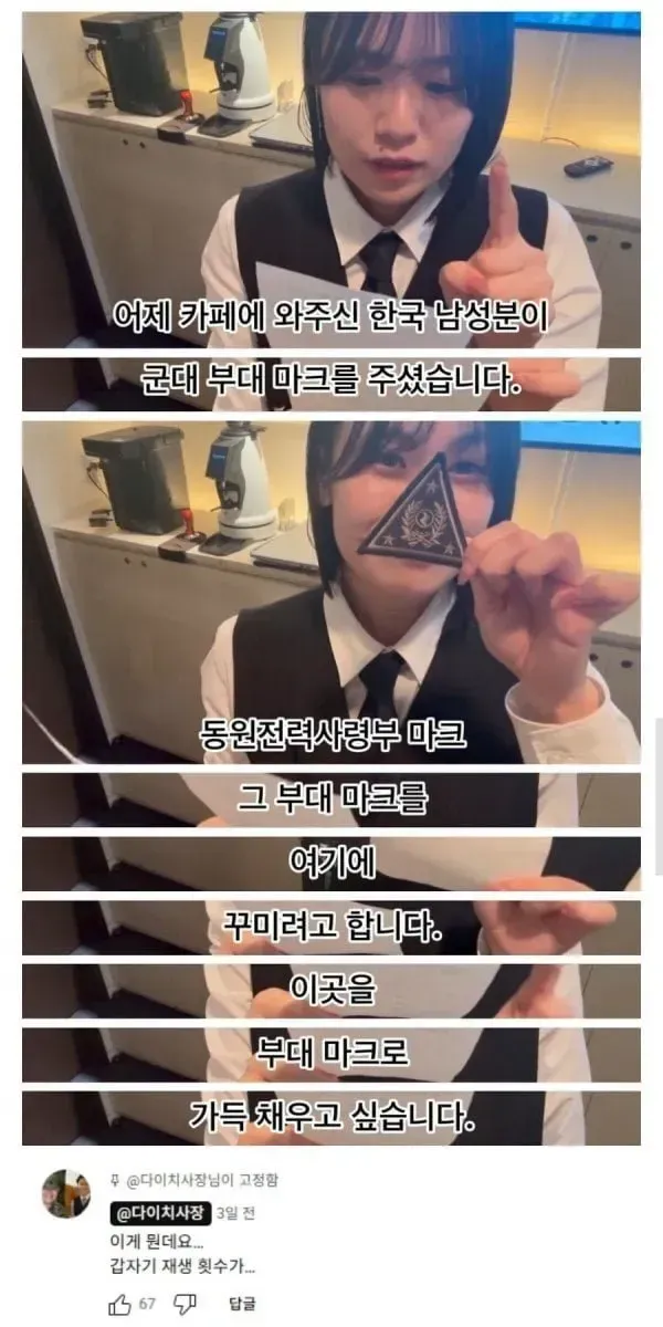 [스압] 대한민국 군부대마크 모은다는 일본카페,,