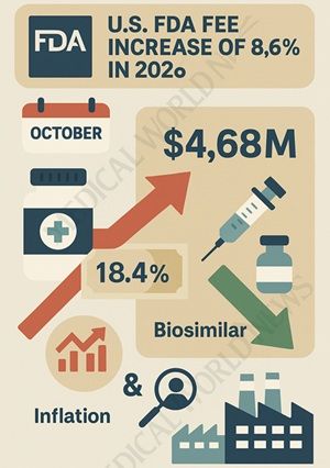 미국 FDA가 지난 7월 30일 2026 회계연도(2025년 10월~2026년 9월) 허가심사수수료를 확정 발표하며, 전문의약품 수수료를 기존 431만 달러에서 468만 달러(약 65억원)로 8.6% 인상한다고 밝혔다.