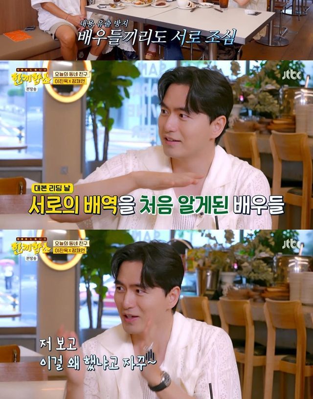 이어 이진욱은 내용 공유도 금지되어 있기에 배우들끼리도 조심한다면서 "웬만한 배우들은 그날 처음 본다. 대본 리딩 하는 날. 그래서 그날 보고 '그게 너였구나' 한다"고 덧붙였다.