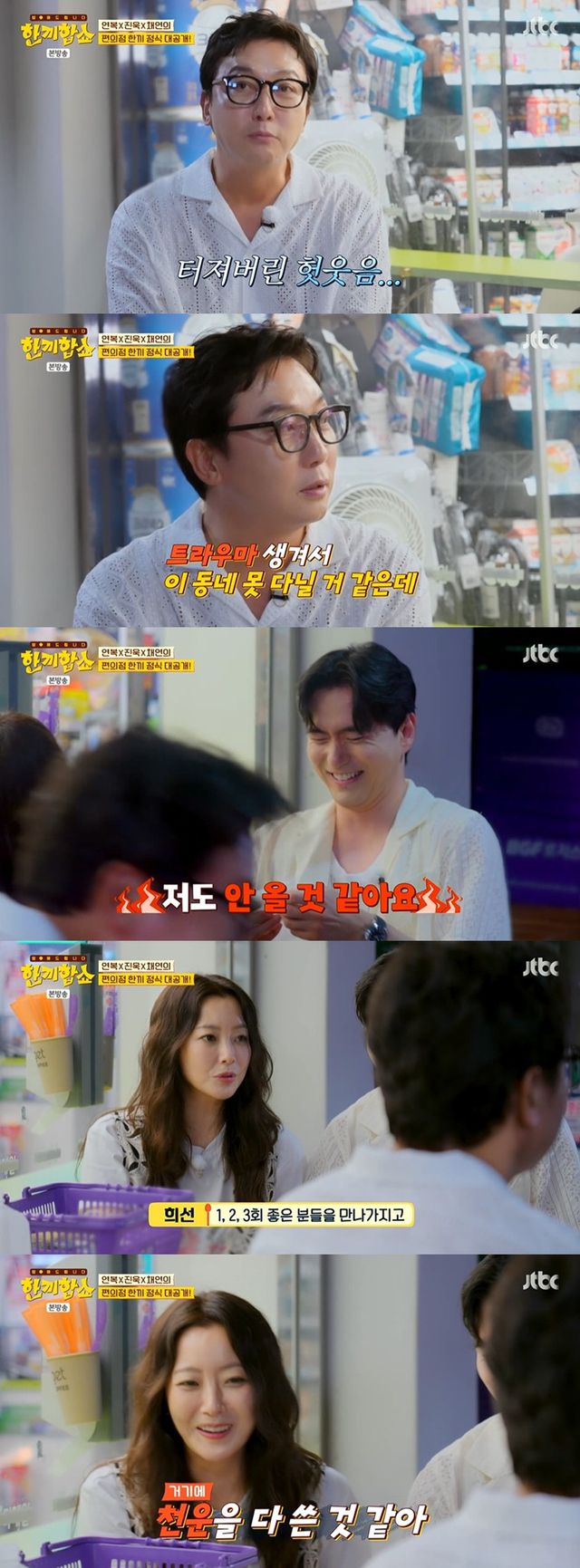 이후 야외 좌석에 앉아 비가 내리는 걸 지켜보던 탁재훈은 "당분간 트라우마 생겨서 이 동네 못 올 것 같다"며 실패 이후의 트라우마를 털어놨다.