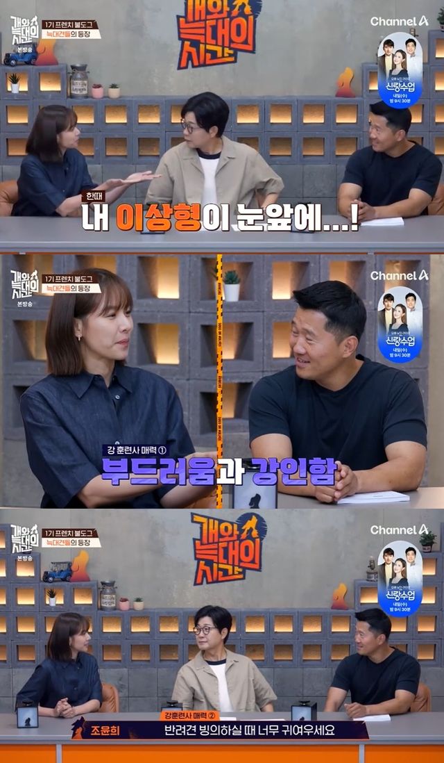 이 가운데 스페셜 MC로 출격한 배우 조윤희는 한때 이상형이 강형욱 훈련사라고 밝히며 떨리는 마음을 고백했다.