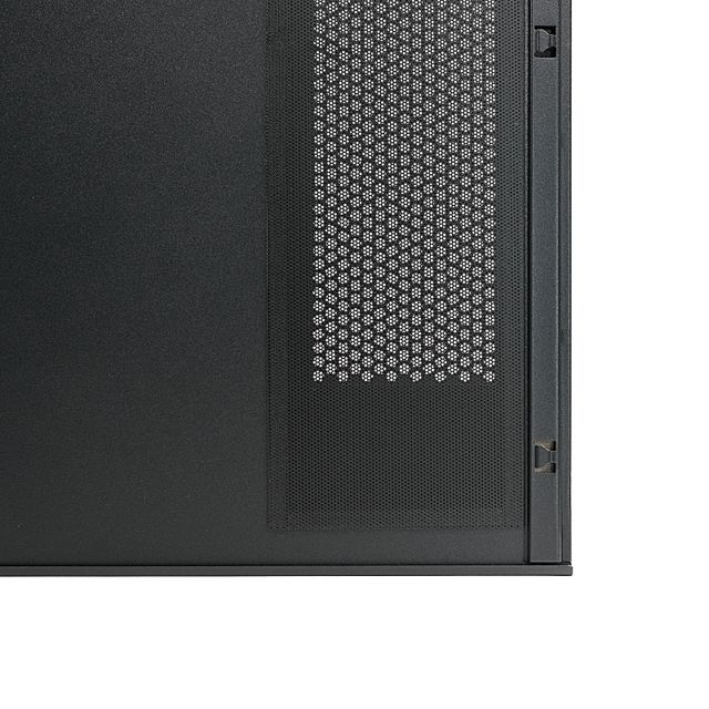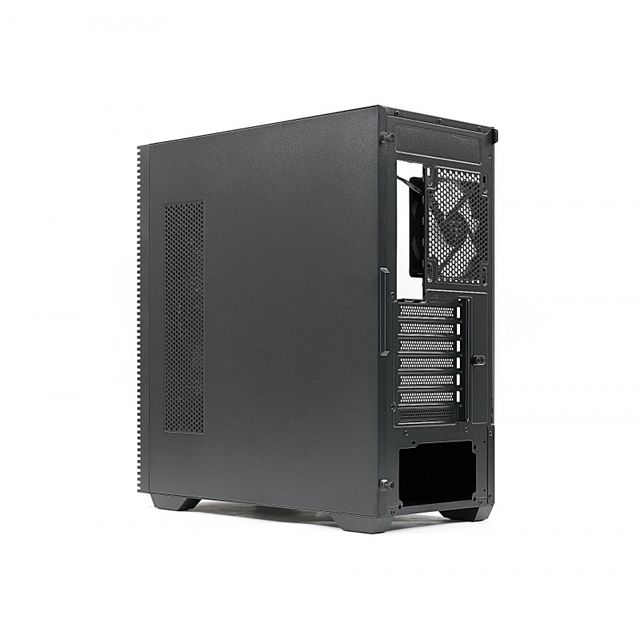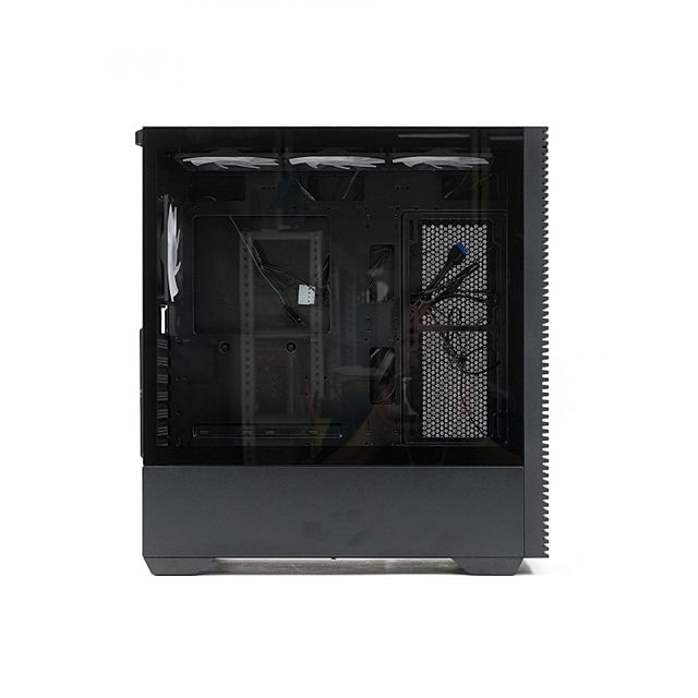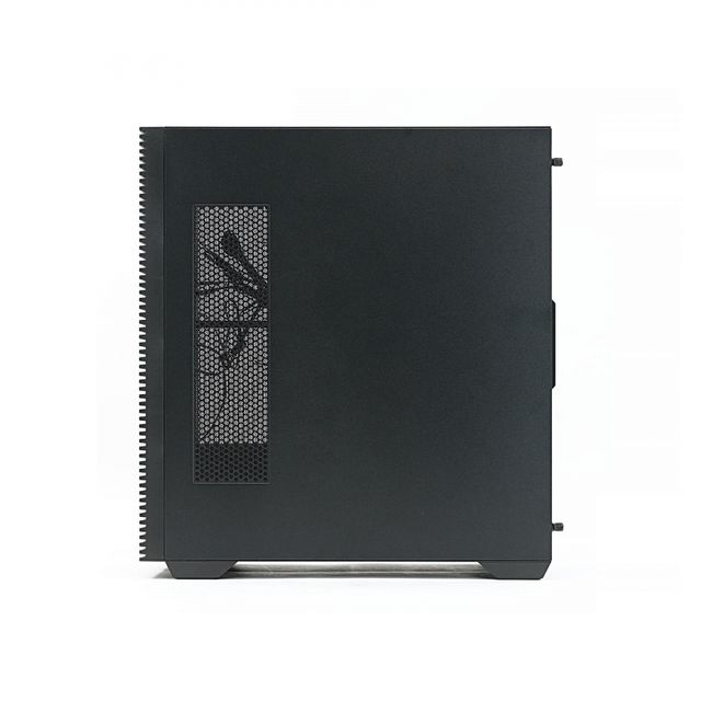 측면은 더 설명할 게 없는 느낌. 최신 케이스 트렌드의 현재를 그대로 반영하는 느낌이다. 분리된 하단의 파워 챔버, 강화유리를 사용한 측면 패널 등 소비자가 생각하는 미들타워 케이스의 정석에서 한치의 벗어남도 없다. E-ATX 메인보드까지 수납 가능한 약간은 큰 사이즈 덕분에 철제 패널로 마감한 하단의 파워 챔버 부분이 유독 묵직하고 안정적인 느낌을 준다.