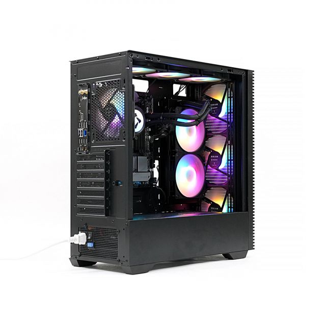 기본 쿨링팬: 총 7개 (전면 140mm LED x3, 상단 120mm LED x3, 후면 120mm LED x1)