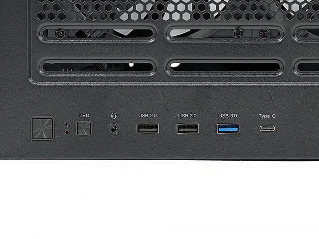 전원 버튼과 LED 제어버튼, 두 개의 USB 2.0 포트와 하나의 USB 3.0 포트, Type-C 포트까지. 현 시점에서 사용자가 필요하다 느낄 모든 포트를 지원한다. 7개의 쿨링팬 기본지원, 140mm 쿨링팬까지 지원하고 가격 역시 채 5만원이 안 되는 가격에 판매되는 제품 치고는 제어부의 지원이 꽤나 만족스럽다.