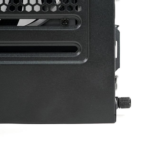 파워 장착부 바로 위에도 두 개의 2.5” SSD를 추가로 장착할 수 있다. 결과적으로 두 개의 3.5” HDD와 두 개의 2.5” SSD, 또는 하나의 3.5” HDD와 세 개의 2.5” SSD를 장착할 수 있는 셈이다. 최근 M.2 방식의 SSD가 주로 OS 드라이브로 사용되는 점을 감안하면 PC 환경에서는 부족하지 않은 수준의 장착 지원이다.