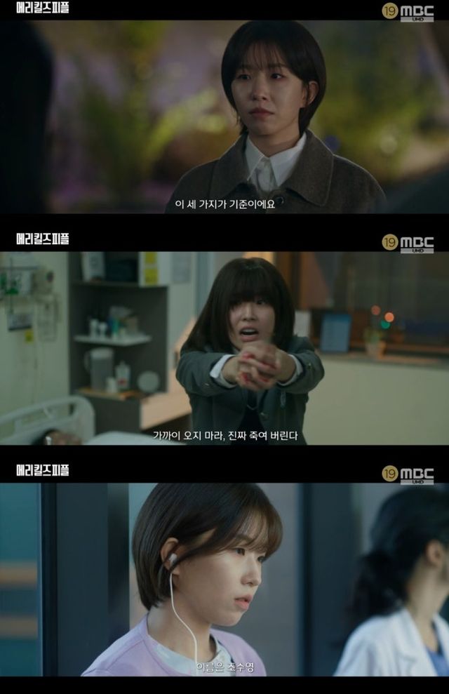 ‘메리 킬즈 피플’은 조력 사망이라는 무거운 소재를 다루는 서스펜스 드라마로, 지난 1일 첫 방송을 시작했다. 윤가이는 극중 우소정(이보영)과 함께 환자들을 조력 사망케 하는 간호사 최예나 역을 맡았다. 우소정에게 병원 내 외진 공간에서 의료 기록을 은밀히 전달하는 장면으로 첫 등장한 그는, 미스터리한 분위기를 끌어올리며 극 초반의 긴장감을 더했다.