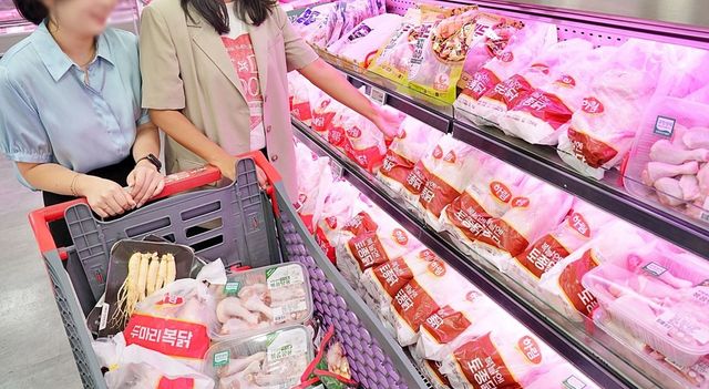 서울시 송파구에 있는 롯데마트 제타플렉스 잠실점 축산 매대에서 '백숙용 닭' 상품을 구매하는 모습. 기사 이해를 돕기 위한 자료 사진. 롯데마트는 목요일인 오는 7일부터 수요일인 13일까지 7일간 복날 대표 식재료를 최대 50% 할인하는 특별 행사를 진행한다고 6일 밝혔다. / 롯데마트 제공