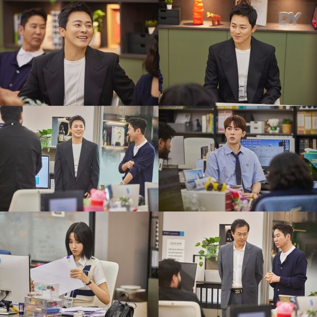 또 다른 스틸에는 신동엽 대표 이하 DY기획 임직원들의 기립 환대 속 긴장이 풀린 듯 환한 미소를 띠고 있는 모습부터 건치를 개방하며 활짝 웃는 모습, 직원들이 제시한 솔루션을 진지하게 경청 중인 표정까지 조정석의 다채로운 모먼트들이 담겨 있다. DY기획 직원들도 제각각 할 일에 집중하는 모습도 눈길을 끈다.