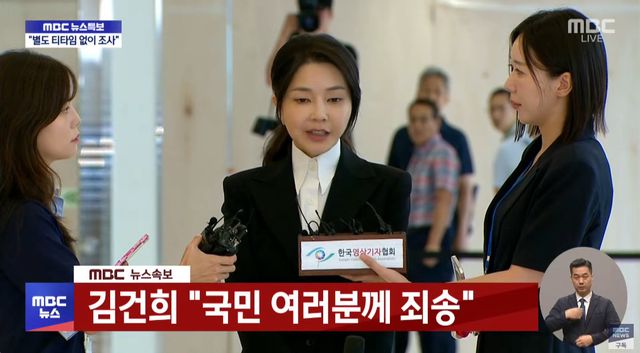 검정색 정장을 입고 나타난 김 여사는 취재진 앞에서 "국민 여러분께 저같이 아무것도 아닌 사람이 심려를 끼쳐 진심으로 죄송하다"며 "수사 잘 받고 나오겠다. 항상 죄송하다"고 입장을 밝혔다. 취재진의 추가 질문에는 응답하지 않은 채 어두운 표정으로 조사실로 향했다.