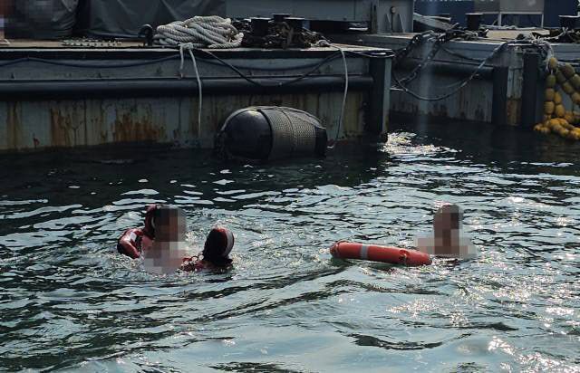 당시 40대 남성 2명이 항구 안에서 수영하고 육지로 올라오려 했는데 힘이 빠지고 올라갈 방법도 마땅치 않아 뗏목(바지)을 잡고 구조를 기다렸던 것으로 알려졌다.