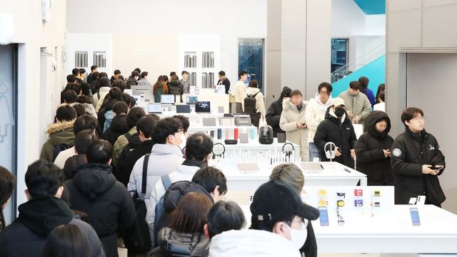 지난 2월 4일 삼성 강남에서 '갤럭시 S25 시리즈' 사전 개통을 위해 방문한 고객들 모습 / 뉴스1