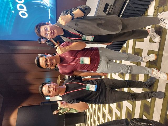 지난 6월 개최된 오가노이드 디벨로퍼 콘퍼런스(OCD)에서 (왼쪽부터) 유종만 오가노이드사이언스 대표, 벤 샬케(Ben Schalke) 미다스 파마 파트너링 총괄, 이경진 오가노이드사이언스 CTO가 기념 촬영을 하고 있다. ⓒ 오가노이드사이언스