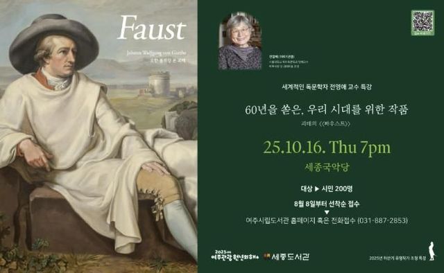 [와이뉴스] 여주시는 오는 10월 16일 오후 7시 세종국악당에서 세계적인 독문학자 전영애 서울대학교 명예교수를 초청하여 괴테의 '파우스트' 특별강연을 운영한다.