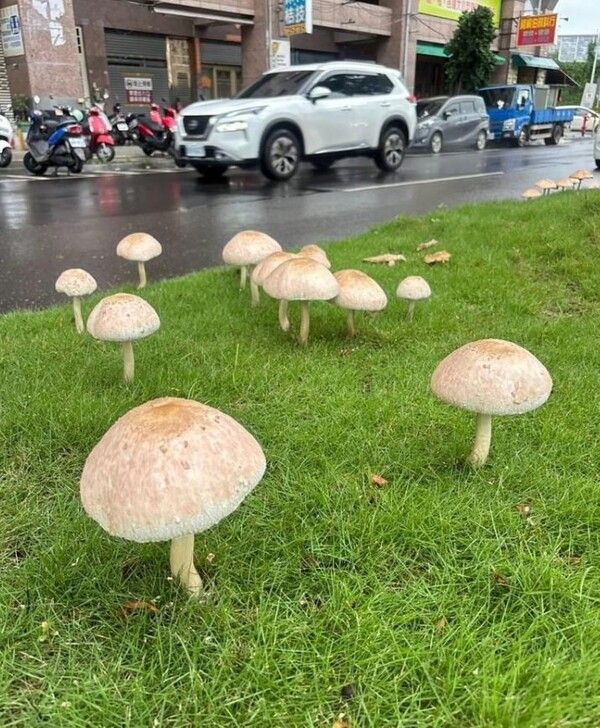 뉴시스 보도에 따르면, 4일(현지시각) TVBS 등 대만 매체들에 따르면 폭우가 잦아든 뒤 가오슝 시내 중앙분리대와 인도 등지에서 손바닥보다 큰 크기의 둥근 형태 버섯들이 무리 지어 자라난 모습이 포착됐다.