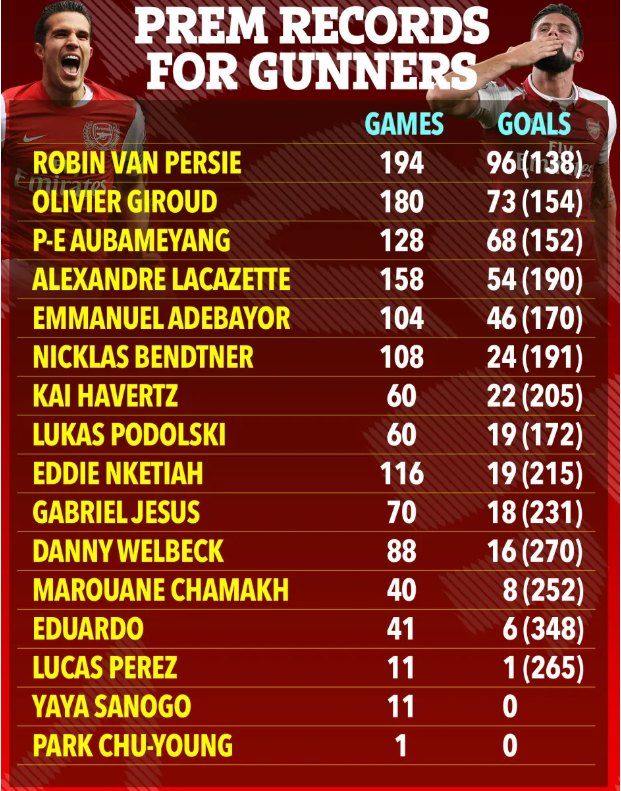 영국 매체 '더선'은 5일(한국시간) 아스널 역대 공격수들에 대해 평가했다.