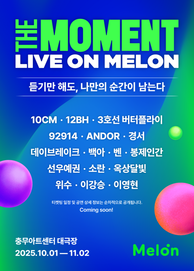 ◆멜론, 10~11월 'The Moment : Live on Melon' 개최