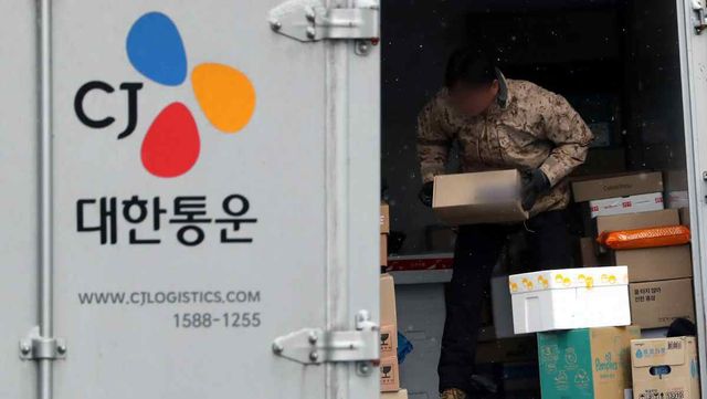 서울에 위치한 CJ대한통운택배 터미널에서 택배기사들이 배송 준비작업을 하고 있다. / 뉴스1