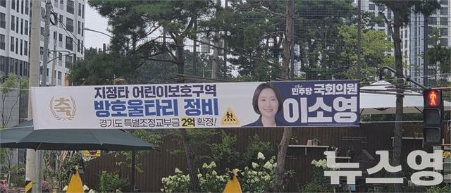 이소영 국회의원이 자신의 치적인 것처럼 홍보한 현수막이 걸려있다./사진=경기도일간기자단