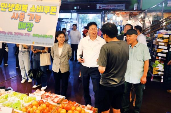 강 차관은 마포농수산시장을 방문하여 ‘소비쿠폰’으로 농축산물을 구매하고 온누리상품권 환급행사장을 찾아 관계자를 격려하며 “소비쿠폰과 함께 이번 전통시장 환급행사를 통해 전통시장을 찾는 소비자들의 국산 농축산물 구매 부담이 덜어지기를 기대한다.”라고 밝혔다.