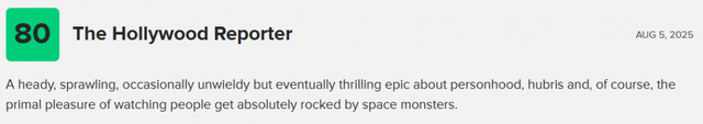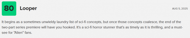 처음엔 다소 산만하게 느껴질 수 있는 여러 SF 아이디어들이 쏟아지지만, 이들이 하나로 모이면서 처음 공개되는 2부가 끝난 뒤에는 완전히 몰입하게 된다. 시의적절하면서도 짜릿한 SF 호러 걸작으로, ‘에이리언’ 팬이라면 반드시 봐야 할 작품이다.