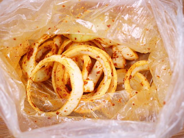 물기 뺀 양파를 봉지에 넣고 흔들어가며