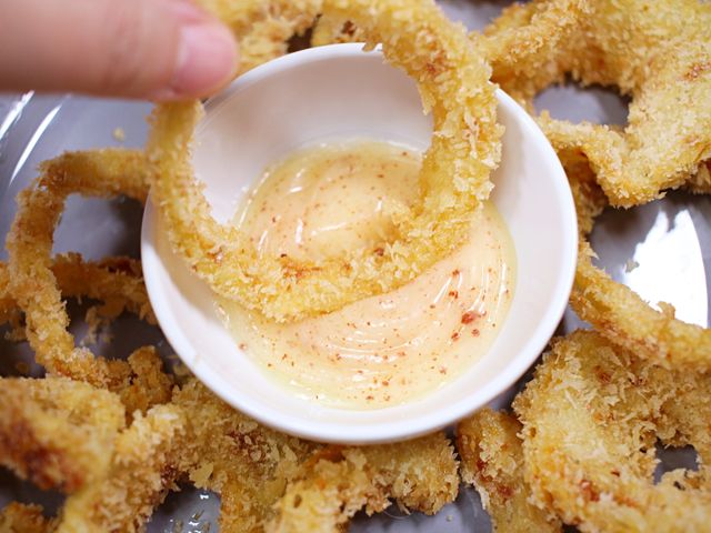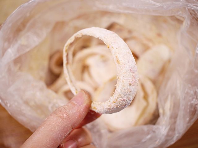 양파의 아린 맛도 줄고 튀김옷이 더 잘 붙어요.
