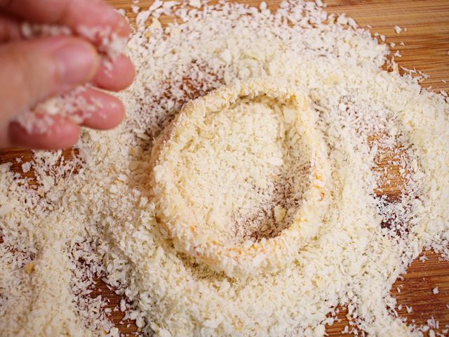 계란물에 담갔다가 빵가루를 입히면 준비 끝.