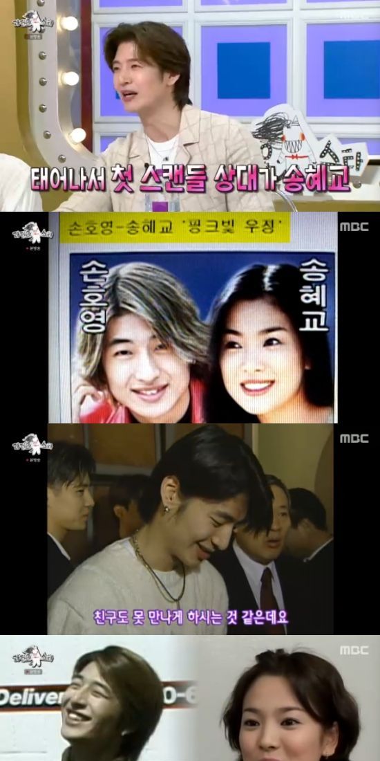 손호영은 데뷔 후 첫 스캔들 상대가 송혜교였다면서 "제가 사교적이라 데뷔 후 친구가 많았다. 혜교와도 친하게 지냈었는데, 스캔들이 났다. 첫 스캔들이었다. 당시만해도 스캔들이 나면 소속사가 난리가 났었다. 이후로 사이가 서먹해지더니 거의 못 만났다"고 말해 눈길을 끌었다.